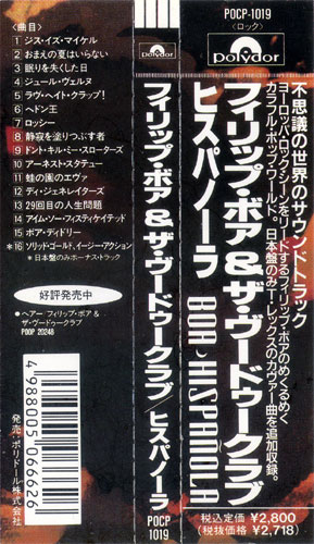 ヒスパノーラ / Hispañola - フィリップ・ボア&ザ・ヴードゥークラブ / Phillip Boa & The Voodooclub English full translation「不思議の世界のサウンドトラック ヨーロッパ・ロック・シーンをリードするフィリップ・ボアのめくるめくカラフル・ポップ・ワールド。 日本盤のみT・レックスのカヴァー曲を追加収録。」 "The sound track of a wonder world The dazzling colorful pop world of Phillip Boa who leads European rock scene. Only the Japan CD includes the added cover song of T. Rex." 発売: ポリドール株式会社・1990年 Polydor Records 1990 税込定価¥2,800 (税抜価格¥2,718) 2,800 yen with tax (2,718 yen without tax) |