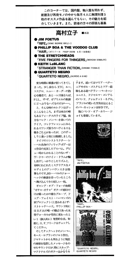 ●Japanese articles * about English translations: the original articles have some mistakes. I corrected them only for personal and band names. 日本語の記事 (掲載紙不明) 1989-1991年 / old Japanese articles 1989-1991